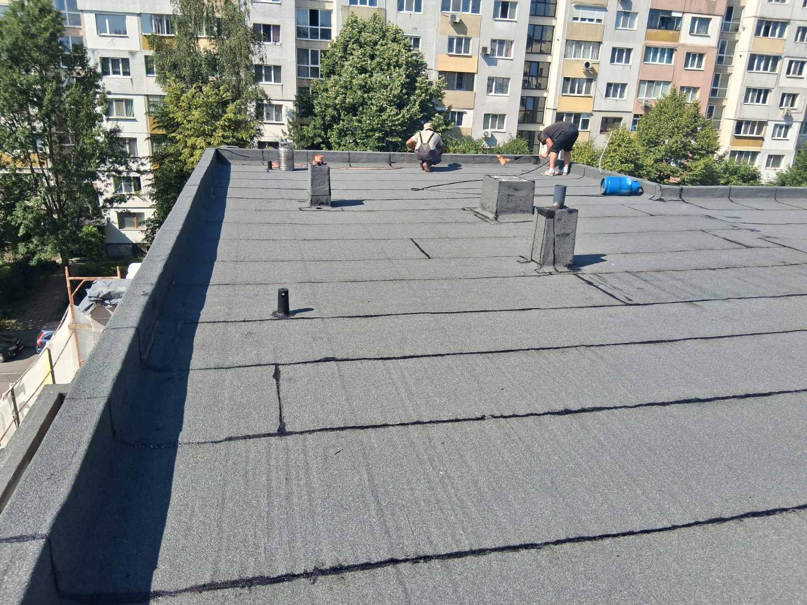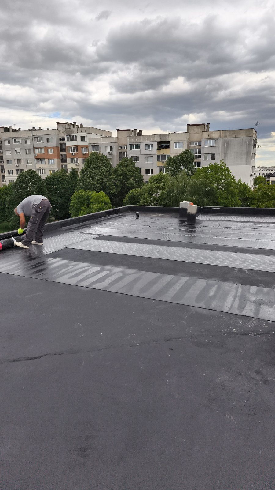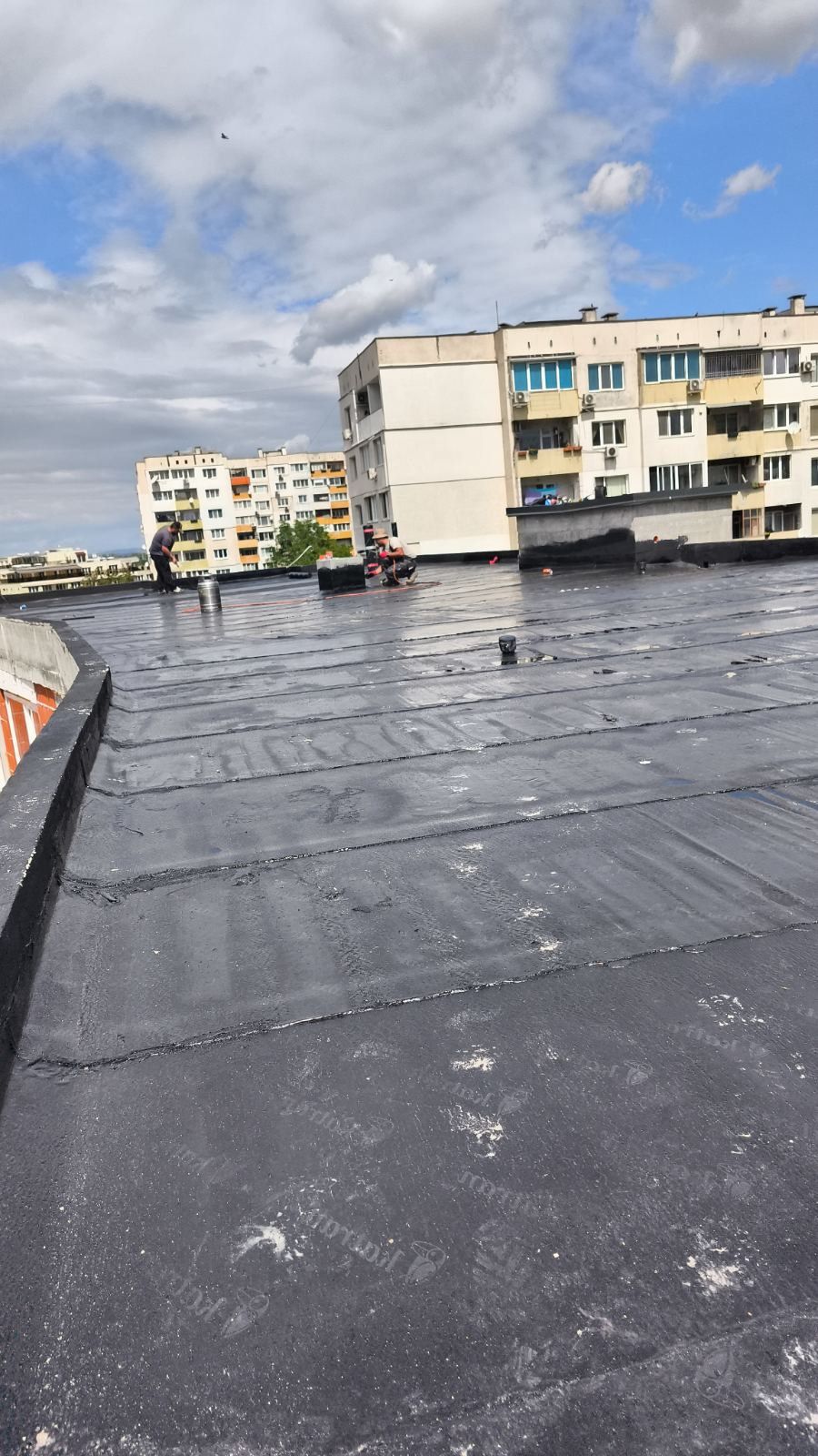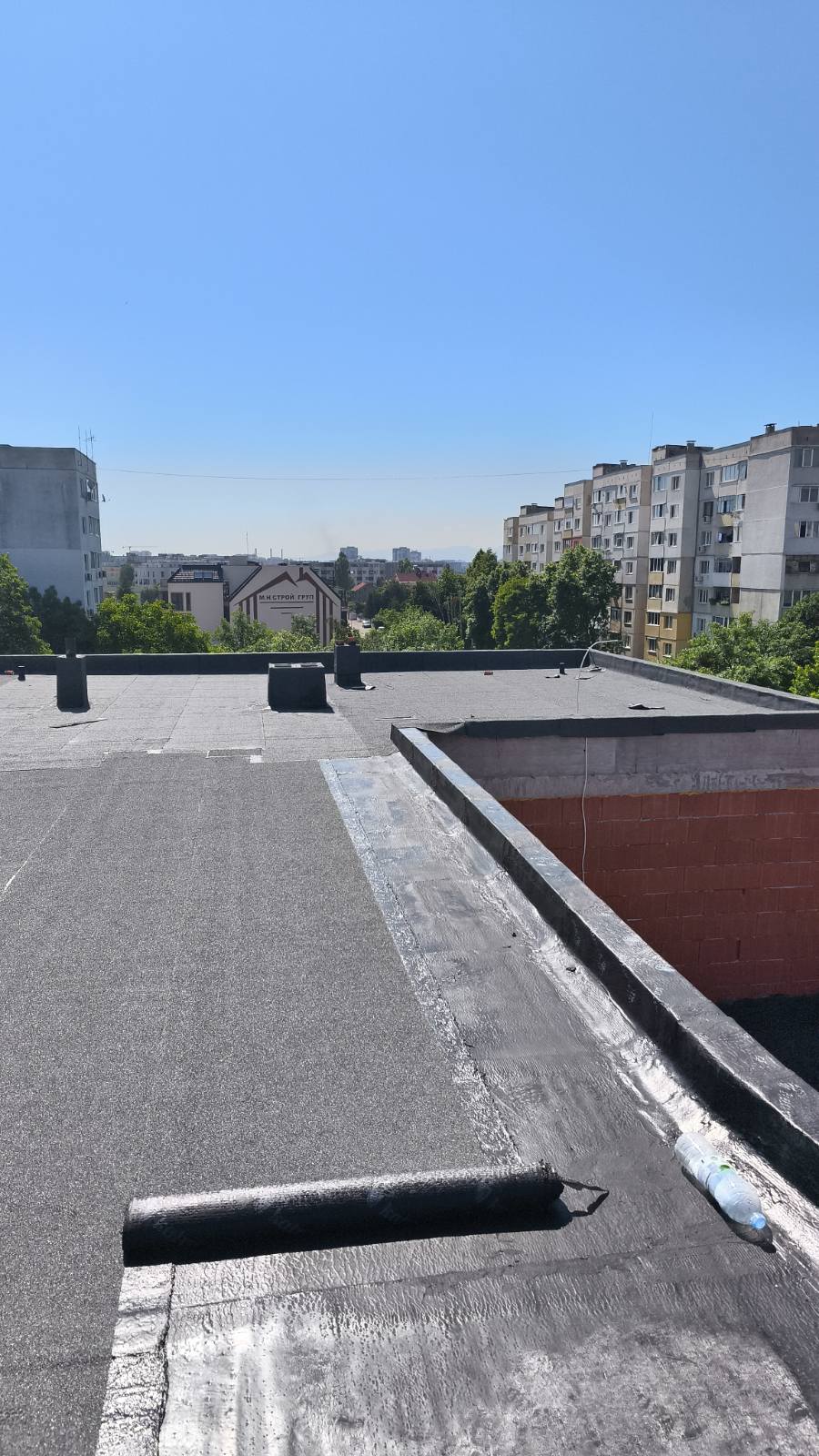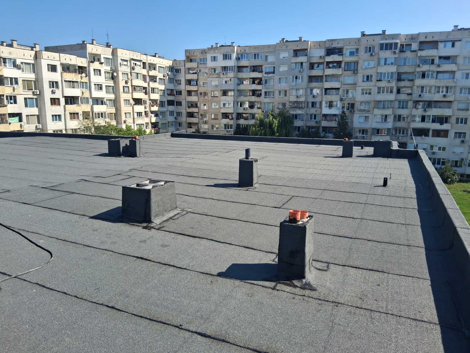 - Хидроизолация на плосък покрив, тераси и площи над гаражи;